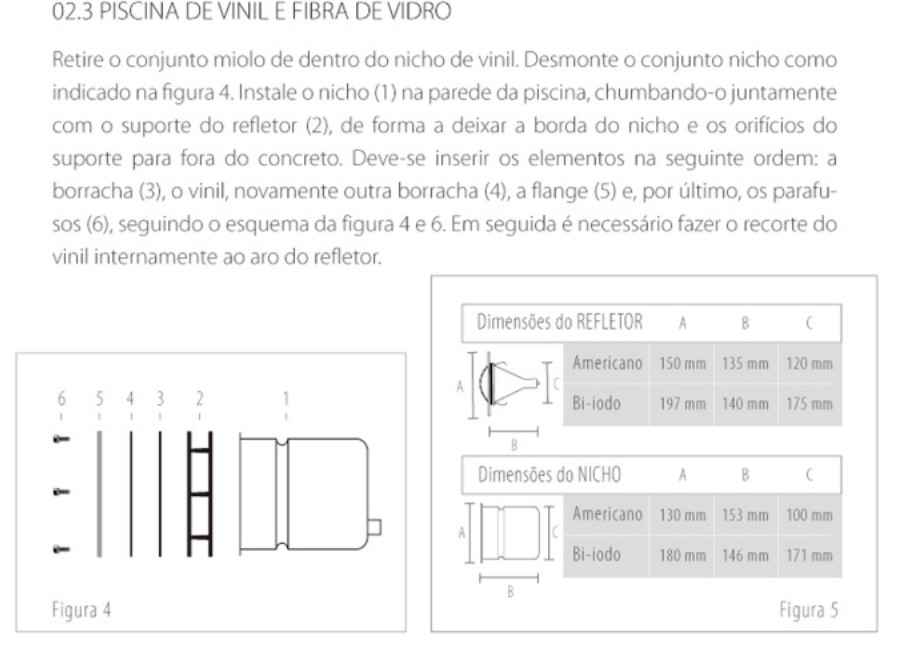 Utilizar: 1 Refletor a cada 24 m² (residências) – 1 Refletor a cada 12 m² (piscinas públicas)
